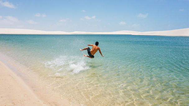 O circuito da Lagoa Azul está entre os mais famosos dos Lençóis Maranhenses. O passeio parte de Barreirinhas e tem meio dia de duração.